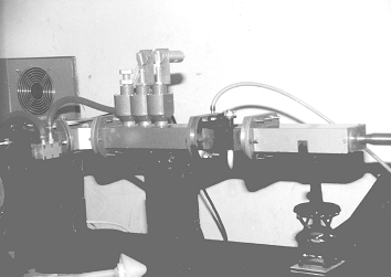 如圖3是所示,微波等離子體炬(MPT)是一種開放結構的等離子體源,是由金欽漢等于1985年首先提出來,目前實驗室常用的微波源是2.45GHz,MPT炬管是一個直接耦合的同軸波導微波諧振腔,腔內存在著固定的電場和磁場分布,而這種特定的能量分布維持了等離子體放電,將一段同軸線一端短路,另一端開路,就構成了同軸諧振腔。MPT炬管的內管和中管是相連通的終端短路活塞的存在使其成為一個同軸微波諧振腔,同軸諧振腔有三種耦合方式:直接耦合,電容耦合和電感耦合。直接耦合又稱為電導耦合,其方法是在同軸腔外導體上開孔,將同軸傳輸線(天線)的內導體直接連接導同軸腔的內導體上,MPT炬管就是采用的這種方式。當炬管頂端到調諧活塞端面的距離是λ/4的奇數倍時(一般為3λ/4),頂端的電場為最強,就可在頂端形成和維持等離子體。圖4是電子科技大學高能所的微波等離子體火炬系統,微波的工作頻率為2.45GHz,磁控管產生的微波通過波導系統、三端調配和短路活塞耦合到同軸傳輸線(天線),并在離內管端口幾厘米的地方形成特定的電磁場分布,從而使空氣等工作氣體電離形成等離子體火炬,圖中的等離子體火炬的火焰長度只要幾厘米,它的主要應用是金剛石薄膜、材料的表面改性、化學分析、納米材料制備、廢物處理等。