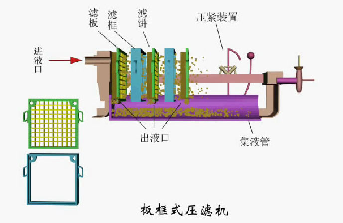 板式壓濾機可分為:板框壓濾機、箱式壓濾機和由兩者合成的壓濾機。