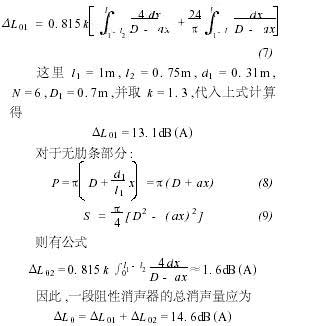 式中ΔL 0 ———沒有氣流時的消聲值,dB