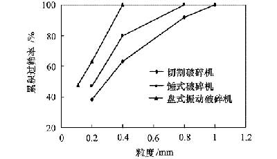![]() 圖3 不同廢物在切割破碎機中破碎到小于1 mm 后的粒度分布特征 |