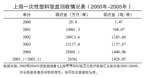 上海(hai)(hai)市政府(fu)于(yu)2000年(nian)(nian)頒布(bu)了(le)(le)(le)(le)《上海(hai)(hai)市一次(ci)性(xing)塑(su)料(liao)飯(fan)(fan)盒(he)(he)管理(li)(li)暫行辦法》,這(zhe)是我國首次(ci)在(zai)地(di)(di)方法規中(zhong)確立(li)了(le)(le)(le)(le)擴大生(sheng)產(chan)(chan)者責任(ren)原(yuan)則(ze)。《暫行辦法》規定凡本地(di)(di)生(sheng)產(chan)(chan)企(qi)業(ye)(ye)或銷售外地(di)(di)飯(fan)(fan)盒(he)(he)的(de)(de)企(qi)業(ye)(ye),按生(sheng)產(chan)(chan)量(liang)或銷售量(liang)繳納(na)回(hui)(hui)收(shou)(shou)處置(zhi)(zhi)費(fei)用;由市容環衛(wei)局組織(zhi)落實(shi)(shi)一次(ci)性(xing)塑(su)料(liao)飯(fan)(fan)盒(he)(he)的(de)(de)回(hui)(hui)收(shou)(shou)工作,送至再生(sheng)利(li)(li)用企(qi)業(ye)(ye)。《暫行辦法》的(de)(de)實(shi)(shi)施(shi),構(gou)建了(le)(le)(le)(le)一種在(zai)立(li)法基礎上政府(fu)加(jia)市場的(de)(de)混合型循環利(li)(li)用體系(xi)。通過對每只飯(fan)(fan)盒(he)(he)收(shou)(shou)取3分(fen)錢(qian)回(hui)(hui)收(shou)(shou)處置(zhi)(zhi)費(fei),使(shi)(shi)生(sheng)產(chan)(chan)者承擔了(le)(le)(le)(le)回(hui)(hui)收(shou)(shou)處置(zhi)(zhi)的(de)(de)經濟責任(ren),將(jiang)產(chan)(chan)品使(shi)(shi)用和(he)回(hui)(hui)收(shou)(shou)利(li)(li)用過程中(zhong)產(chan)(chan)生(sheng)的(de)(de)外部性(xing)內部化到企(qi)業(ye)(ye)經營成(cheng)(cheng)本中(zhong)。征收(shou)(shou)的(de)(de)費(fei)用用于(yu)補貼一次(ci)性(xing)塑(su)料(liao)飯(fan)(fan)盒(he)(he)回(hui)(hui)收(shou)(shou)處置(zhi)(zhi)的(de)(de)利(li)(li)潤薄弱環節(jie),如回(hui)(hui)收(shou)(shou)、運輸和(he)處置(zhi)(zhi),以(yi)及支付政府(fu)管理(li)(li)費(fei)用,使(shi)(shi)系(xi)統資金(jin)流(liu)和(he)物流(liu)能(neng)夠實(shi)(shi)現有效運轉。混合型循環體系(xi)的(de)(de)成(cheng)(cheng)功之(zhi)處在(zai)于(yu)為(wei)一次(ci)性(xing)飯(fan)(fan)盒(he)(he)的(de)(de)回(hui)(hui)收(shou)(shou)利(li)(li)用開拓了(le)(le)(le)(le)利(li)(li)潤空間,把(ba)原(yuan)本缺(que)乏市場動力的(de)(de)塑(su)料(liao)飯(fan)(fan)盒(he)(he)納(na)入了(le)(le)(le)(le)循環的(de)(de)軌(gui)道(dao)。自2000年(nian)(nian)上海(hai)(hai)市實(shi)(shi)施(shi)《一次(ci)性(xing)塑(su)料(liao)飯(fan)(fan)盒(he)(he)管理(li)(li)暫行辦法》以(yi)來(lai),一次(ci)性(xing)塑(su)料(liao)飯(fan)(fan)盒(he)(he)逐步形成(cheng)(cheng)單獨的(de)(de)收(shou)(shou)運處置(zhi)(zhi)系(xi)統,塑(su)料(liao)飯(fan)(fan)盒(he)(he)的(de)(de)回(hui)(hui)收(shou)(shou)率已(yi)超過70%。白色污染問(wen)題得到了(le)(le)(le)(le)一定程度(du)上的(de)(de)控制(見下表(biao))。