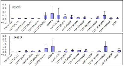 圖1. 機械(xie)爐排和流化床焚(fen)燒爐2378取代(dai)PCDD/Fs的(de)排放分布與特征(zheng)