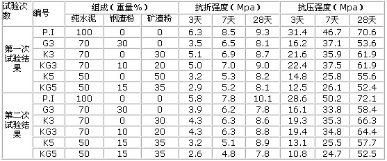采用我公司的鋼渣粉和礦渣粉,按照國家水泥標準的方法,測定了摻加鋼渣粉的水泥膠砂強度,由此來確定鋼渣微粉與礦渣微粉較適合的配比量。