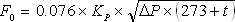式中: F0為氣體流速,m/s;ΔP為氣體動壓,Pa;