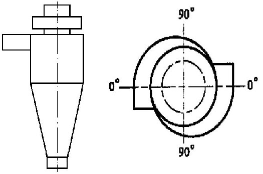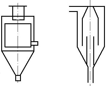在理論繼續發展的同時,旋風除塵器不斷有新的改進措施提出,從而開發出許多新型高效的旋風除塵器。國內外研究者在旋風除塵器整體改進方面推出了新型旋風除塵器其中以PV型旋風除塵器和環流式旋風除塵器最為矚目。PV型旋風除塵器由石油大學、洛陽石油化工工程公司和原北京設計院聯合開發,為中國石油化工集團公司專有技術,已幾乎在所有的催化裂化裝置中得到成功應用,而且又在化工及煤炭發電等領域中得到推廣應用,應該說是很成熟的一項先進技術。[15,16]新型環流式旋風除塵器(國家發明專利產品,專利號: ZL 92219769.5)。如圖1,環流式旋風除塵器的外型與常規型旋風除塵器相似,但器內增設了強化分離效率的內件。該除塵器具有壓降低、放大效應小、分離效率高、操作穩定性好等特點[17,18,19]。