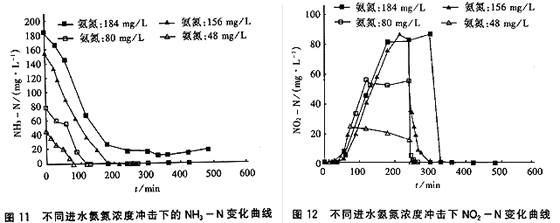 2.3 氨氮沖(chong)擊濃度的試驗結果與(yu)分析