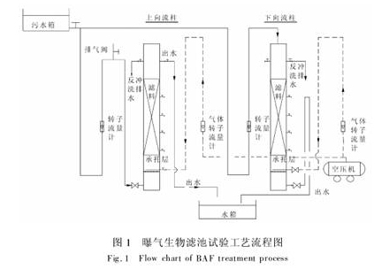 曝(pu)(pu)氣生(sheng)(sheng)(sheng)物(wu)濾池(chi)(BiologicalAeratedFilter,BAF)是國外(wai)從80年代開始(shi)研(yan)究推(tui)廣,到90年代初期已(yi)(yi)基本成(cheng)(cheng)熟(shu)的(de)一項(xiang)新型水(shui)(shui)處(chu)理(li)工藝(yi)(yi)。它(ta)集生(sheng)(sheng)(sheng)物(wu)膜的(de)強氧(yang)化降解能力(li)和(he)(he)濾層的(de)截留效(xiao)能于一體,具有池(chi)容小、出(chu)水(shui)(shui)質量高(gao)(gao)、流程簡(jian)單等優點,目(mu)(mu)前已(yi)(yi)經(jing)廣泛(fan)應用于城市污水(shui)(shui)的(de)處(chu)理(li)、中水(shui)(shui)回用及微污染源水(shui)(shui)的(de)預處(chu)理(li),已(yi)(yi)成(cheng)(cheng)為(wei)(wei)了(le)一種經(jing)濟、高(gao)(gao)效(xiao)的(de)污水(shui)(shui)二級、三級處(chu)理(li)工藝(yi)(yi)。它(ta)可以去處(chu)SS、COD、BOD硝化、反硝化除磷等。由(you)于在我(wo)國研(yan)究和(he)(he)應用時(shi)間不長(chang),對BAF實際運行(xing)的(de)經(jing)驗總結目(mu)(mu)前還不夠多,故而本文對上向(xiang)流曝(pu)(pu)氣生(sheng)(sheng)(sheng)物(wu)濾池(chi)(UBAF)和(he)(he)下(xia)向(xiang)流曝(pu)(pu)氣生(sheng)(sheng)(sheng)物(wu)濾池(chi)(DBAF)用于生(sheng)(sheng)(sheng)活污水(shui)(shui)的(de)處(chu)理(li)的(de)啟動和(he)(he)掛膜特(te)性做了(le)研(yan)究,為(wei)(wei)工程運行(xing)提供一定的(de)參考。