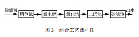 通過對目前國內外滲濾液處理部分組合工藝的研究可以發現,預處理+生物處理+后處理組合方式是目前較為理想的滲濾液處理模式。為此,結合各工藝的特點,筆者提出了微電解+氧化溝+砂濾的組合工藝對滲濾液進行處理。