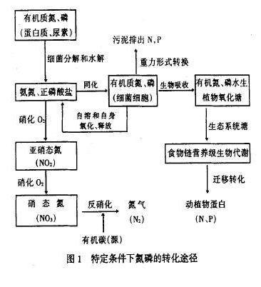 (2)生化系統除磷有二條途徑:1.同化、活性污泥吸收并借助重力流沉淀轉化途徑。2.水生生物吸收凈化與食物鏈轉化途徑。