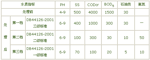 根據上述情況,我們擬定了研究試驗工作的進水水質和處理出水水質目標。鑒于此類廢水處理難度大,國內尚缺乏可借鑒的經驗,我們擬定的處理出水水質分為三個檔次要求,詳見表1。