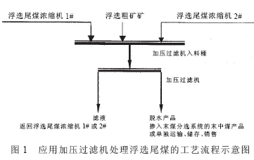經濃縮機濃縮后的浮選尾煤,應用加壓過濾機脫水后,摻入到原系統的末中煤;設置了尾煤脫水產品運輸專線,也可以單獨作為一個產品儲運銷售。