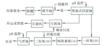 某印染有限公司是一家以染色、印花為主的加工型鄉鎮企業,廢水主要來源分三個部分:①染料車間,主要由各類坯布染色后排放的含染料的廢水混合而成,其中包括整個工藝中所需前處理水;②印花車間,半成品水洗及滾筒沖洗水等;③各類生活用水。印染混合廢水具有如下特點:①廢水量大,約占印染用水量的70%~90%;②水質復雜,色度高,有機物含量高,耗氧量大,懸浮物多,并且含有微量有毒物質;③受原料、季節、市場需求等變化的影響,使水質水量變化很大。