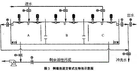 因為邊池在曝氣狀態時,出水槽內進滿混合液,所以邊池進入沉淀狀態后,開始的出水不能作為處理后的出水直接排放,需用沖洗排人處理系統。待出水澄清后,方可外排。