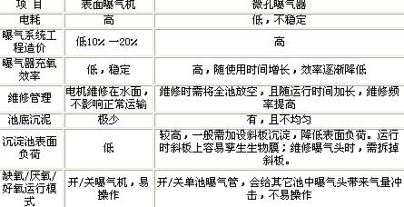 UNITANK工藝可以采用表面機曝氣和微孔器曝氣兩種形式。針對這兩種形式在UNITANK工藝中的特點作如下對比