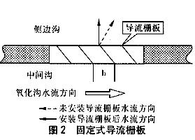 有兩(liang)個辦法可(ke)以解決這個問題:一(yi)是取消循環池(chi)的(de)設計,這樣(yang)三溝式氧(yang)化溝工(gong)藝就轉(zhuan)變為(wei)UNITANK工(gong)藝;二是在氧(yang)化溝之(zhi)間的(de)底部(bu)連(lian)通口安裝導(dao)流(liu)(liu)(liu)柵(zha)板。導(dao)流(liu)(liu)(liu)柵(zha)板是一(yi)組平行且與(yu)水(shui)流(liu)(liu)(liu)方(fang)向有一(yi)定夾(jia)角的(de)不銹鋼板。當混(hun)合液通過導(dao)流(liu)(liu)(liu)柵(zha)板時(shi),受到柵(zha)板的(de)作用(yong)而(er)改變了水(shui)流(liu)(liu)(liu)方(fang)向,從而(er)大大減輕了對側邊溝混(hun)合液的(de)推動(dong)作用(yong),進(jin)一(yi)步提高了出水(shui)效果。導(dao)流(liu)(liu)(liu)柵(zha)板有固(gu)定式和活動(dong)式兩(liang)種(zhong),可(ke)酌情選用(yong)。其中(zhong)固(gu)定式如(ru)圖(tu)2所示。