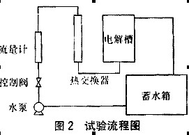 試驗流程如圖2所示。蓄水箱中的溶液被泵提升后經流量計、熱交換器進入電解槽進行電解,電解后的溶液再流回蓄水槽進行循環連續電解。