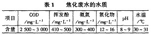 所用焦化廢水為焦化廠蒸氨前廢水,其水質見表1:
