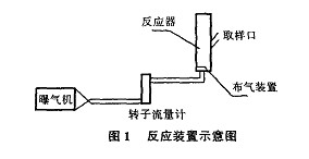試驗裝置如同1所示,反應器的容積為1000mL。試驗設備有HGX-180型空壓機,ZB-10玻璃轉子流量計和活性炭(圓柱狀活性炭,粒徑約為1mm)。試驗時,先將活性炭在球磨機中研磨,然后分離出不同粒徑活性炭,水洗烘干后備用。