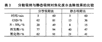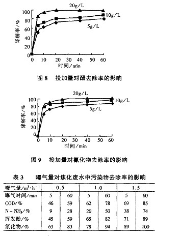 比較了分散和靜態條件下活性炭對焦化廢水中主要污染物的去除率。在曝氣條件下,活性炭