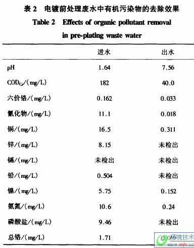 電鍍污水中有機污染物去除工藝