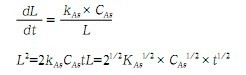 實驗研究表明,砷首先在催化劑表面發生反應,然后滲入催化劑內部,形成一個砷的飽和層。將這個飽和層的厚度設為L,計算L隨時間 t 的變化規律: