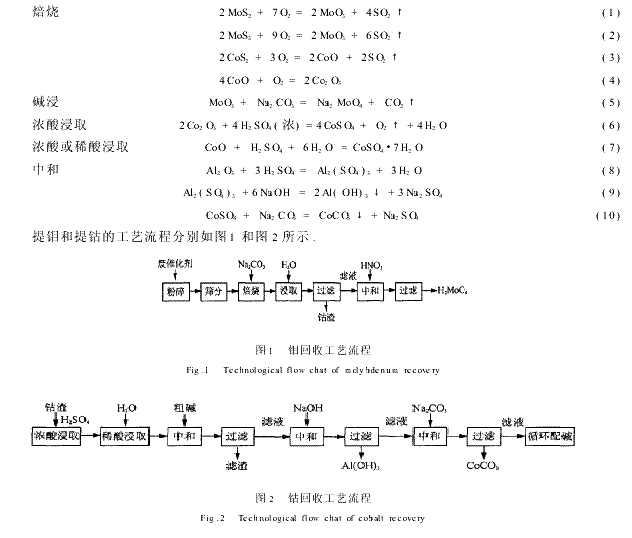 從廢催化劑中提取鉬和從提鉬后的鈷渣中提取鈷的化學反應為: