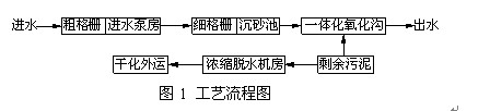 該污水處理廠采用側溝式一體化氧化溝工藝,其工藝流程如圖1: