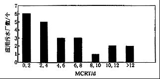 在美國,根據Nocardia菌產生泡沫的具體情況,采用不同MCRT控制泡沫的污水廠數目統計結果見圖1。