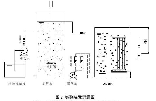 整個實驗系統有兩部分組成,水(shui)解(jie)(jie)(jie)池(chi)(chi)(chi)和(he)(he)動(dong)態(tai)膜生(sheng)物反(fan)(fan)應器(DMBR),反(fan)(fan)應器由有機玻璃制成,DMBR是實驗的(de)(de)主反(fan)(fan)應區。其(qi)中水(shui)解(jie)(jie)(jie)池(chi)(chi)(chi)為(wei)(wei)(wei)長(chang)方柱形,有效(xiao)容(rong)積(ji)24L(0.2×0.15×0.8m),HRT=7d。水(shui)解(jie)(jie)(jie)池(chi)(chi)(chi)在工作時有攪(jiao)拌(ban)器(J1-100W)的(de)(de)攪(jiao)動(dong)加(jia)強傳質(zhi),轉速為(wei)(wei)(wei)500rpm/min。水(shui)解(jie)(jie)(jie)池(chi)(chi)(chi)的(de)(de)進水(shui)由蘭格蠕動(dong)泵(BT-100M)從原(yuan)(yuan)水(shui)池(chi)(chi)(chi)供(gong)(gong)給,原(yuan)(yuan)水(shui)池(chi)(chi)(chi)的(de)(de)垃圾(ji)滲(shen)濾液(ye)(ye)經過了(le)適當稀釋,使得水(shui)解(jie)(jie)(jie)池(chi)(chi)(chi)的(de)(de)實際進水(shui)水(shui)質(zhi)為(wei)(wei)(wei):COD=2100~3400mg/L,NH3-N=410~620mg/L ,pH=7.86~8.05。DMBR 外型也是長(chang)方柱型,有效(xiao)容(rong)積(ji)為(wei)(wei)(wei)9L(0.20×0.15×0.30m)。DMBR 內(nei)設(she)置(zhi)擋板(ban)將反(fan)(fan)應器隔為(wei)(wei)(wei)生(sheng)化區和(he)(he)膜池(chi)(chi)(chi)。在生(sheng)化區和(he)(he)膜池(chi)(chi)(chi)內(nei)均設(she)有穿孔曝(pu)(pu)氣(qi)(qi)(qi)管(guan),生(sheng)化區曝(pu)(pu)氣(qi)(qi)(qi)為(wei)(wei)(wei) DMBR 內(nei)混(hun)合(he)(he)(he)液(ye)(ye)供(gong)(gong)氧和(he)(he)推動(dong)混(hun)合(he)(he)(he)液(ye)(ye)循環之用,曝(pu)(pu)氣(qi)(qi)(qi)強度為(wei)(wei)(wei)0.4m3/h,混(hun)合(he)(he)(he)液(ye)(ye)DO=3~5 mg/L;膜池(chi)(chi)(chi)曝(pu)(pu)氣(qi)(qi)(qi)管(guan)的(de)(de)反(fan)(fan)曝(pu)(pu)氣(qi)(qi)(qi)強度為(wei)(wei)(wei)1.0m3/h。DMBR 的(de)(de)HRT=3d,MLSS 控(kong)制在4.2g/L 左右。DMBR 的(de)(de)進水(shui)水(shui)質(zhi)為(wei)(wei)(wei):