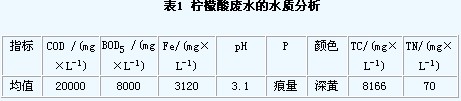 (2)檸(ning)檬酸廢水水質(zhi):
