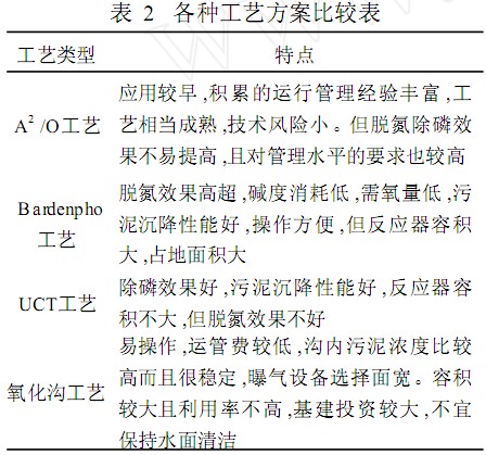 具有脫氮除磷效果的各種城市污水處理工藝比較見表2[1]。