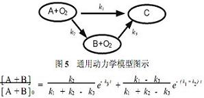動力學研究有助于揭示反應歷程,了解反應機理及限速步驟,為工程設計提供指導并預測反應結果。通用動力學模型[6](圖5和公式1)以三個動力學參數關聯了宏觀有機物氧化和中間產物有機酸變化,較好地揭示了一般有機物濕式氧化規律。