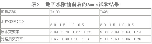 取經二氧化氯凈化前、后的研究區水源地地下水作Ames試驗,其結果見表2。