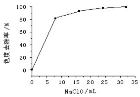 100mL水樣,pH=6,反應時(shi)間=25min。改(gai)變氧(yang)化劑(2.5%的(de)NaClO溶液,以下相同)的(de)量,結果(guo)見圖(tu)1和圖(tu)2。