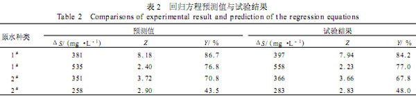 2#原水的多元非線性回歸方程具體為式(10)至式(12)。