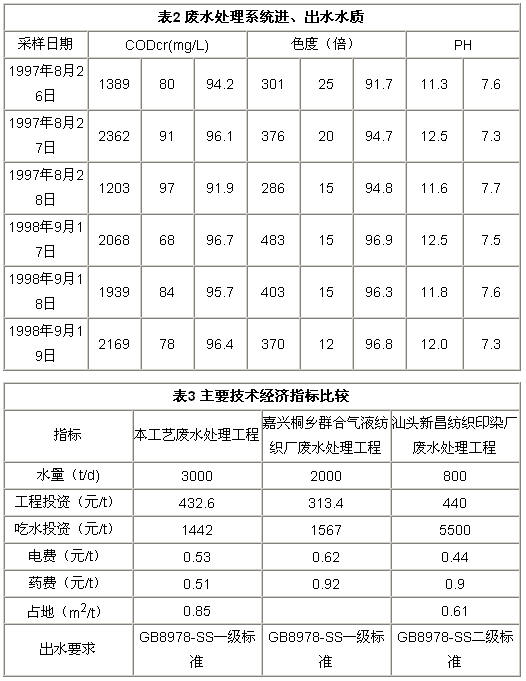本處理工藝工程與國內同類廠家生產廢水處理工程的主要技術經濟指標比較見表3。