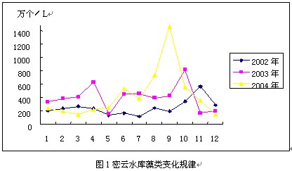 2005年由于(yu)改變藻類的監(jian)測方法,藻類總體(ti)數量(liang)較往(wang)年下降了4倍左右。根(gen)據對密云水庫藻類品種的分析可以發(fa)現在藍綠藻衰退(tui)后和上升階段,用戶嗅味(wei)反映最強烈(lie),與相關研究(jiu)成果規律(lv)相同2、6。