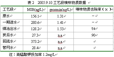 高錳酸鉀預氧化技術是第九水廠2002年開始使用,經上述對進廠水嗅味物質分析結果證明,此項技術已不能滿足2005年秋季的水質處理要求。