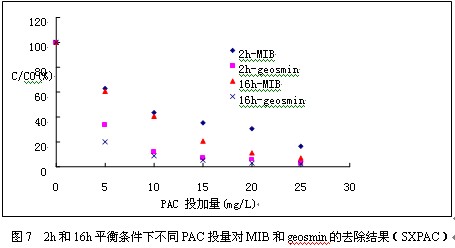 由圖7、圖8可以看出,為保證(zheng)充分利用(yong)PAC的吸(xi)附(fu)能力,延長PAC在(zai)工(gong)藝中(zhong)的接觸時間是非常(chang)必要的;同樣,與動(dong)力學結果(guo)一致,山西PAC吸(xi)附(fu)效果(guo)優于寧夏PAC,但(dan)對geosmin的效果(guo)影響不大。