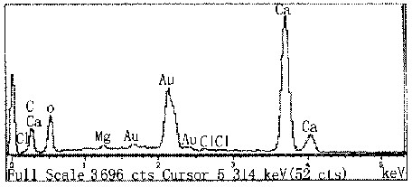 從圖3a的照片來看,污染層上還分布有很多大小不一的白點,估計是無機元素形成的沉積物。利用FESEM-EDS對上述物質進行了成份分析,結果見圖4。圖4表明這些污染物質是無機垢體,主要是 Ca,其次是Mg。認為主要來源于配水所用自來水中的Ca2+和Mg2+。很多研究結果表明,在膜過濾過程中Ca元素對膜污染起重要作用,一方面Ca鹽溶解度小,容易在膜面發生濃差極化而沉淀析出,如CaCO3,CaSO4;另一方面,Ca會改變水中許多污染物質的存在形態而影響膜污染[2]。