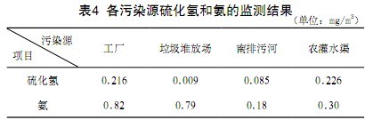 (3)各污染源硫化氫和氨的濃度(見表4)