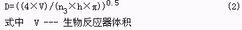 設(she)生物反應(ying)器為(wei)圓形完全混合(he)式,有(you)效水深h=3.0 m,可由式(2)得到D。