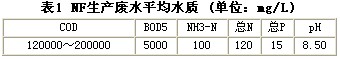 1)NF廢水的最佳稀釋比控制在20倍,單元水力停留時間為酸化處理24小時,厭氧處理24小時,好氧處理48小時。