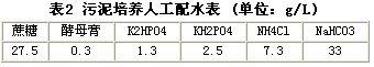 實驗用種污泥取自北京市朝陽區北小河污水處理廠。污泥采集后,首先采用表2所示的人工配水進行厭氧及好氧污泥培養,然后根據廢水處理效果逐漸降低進水中蔗糖的比例。1個月后,蔗糖由最初的27.5g/L減至為0。污泥培養采用批量方式,1-2d換一次廢水。厭氧污泥和好氧污泥達到穩定后,用于各種實驗。