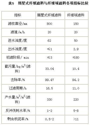 表(biao)(biao)5為彗星式纖(xian)維濾(lv)(lv)料過濾(lv)(lv)器(qi)與纖(xian)維球濾(lv)(lv)料過濾(lv)(lv)器(qi)的(de)各(ge)項指(zhi)標列(lie)表(biao)(biao),其中(zhong)纖(xian)維球數據取自文獻(xian)[6] 。