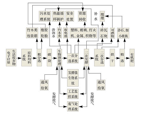 美商生活垃圾生化處理廠的工藝流程如圖3。