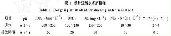 CODCr : 200~250 mg/L,BOD5 : 100~130 mg/L,NH3 - N: 4~30 mg/L, T - P : 2~4 mg/L, SS: 150~200 mg/L,根據實際情況要求選擇一種占地面積小,造價和運行費用低,運行穩定,管理簡便的廢水處理工藝,且出水水質基本達到( GB8978 -1996)一級排放標準。