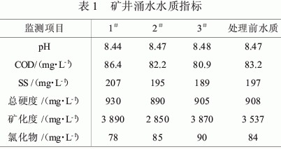 經對目前礦井實際涌水水質的檢測,該礦井涌水水質,硬度大、礦化度高,具體參數如表1所示。
