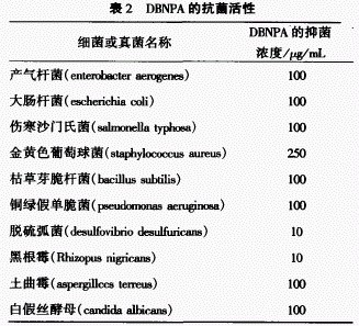 美國DOW化學公司研究人員對該物質的殺菌性能進行了測試,測得DBNPA的抗菌活性如表2[6].