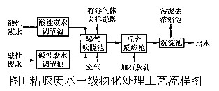 目(mu)前,國內粘膠(jiao)纖維生(sheng)產廢水的(de)一級物化處理工藝(yi)普遍采用如(ru)圖(tu)1所示(shi)的(de)流(liu)程。粘膠(jiao)纖維生(sheng)產過(guo)程中(zhong)產生(sheng)的(de)酸性廢水和(he)堿性廢水經混合中(zhong)和(he)、曝(pu)氣吹脫硫化物、加石灰乳除(chu)鋅和(he)沉淀澄清后,出水很難達到(dao)國家排放標準,尤其是廢水的(de)S2-、Zn2+和(he)COD等不易達標。